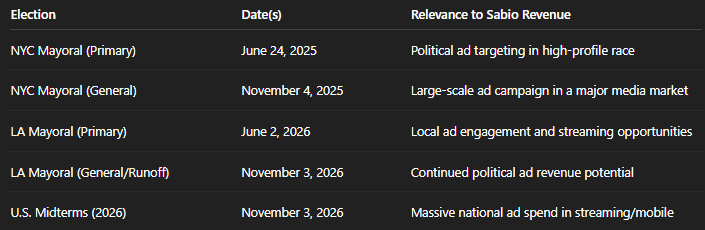 ❌ Political advertising revenue captured by Sabio is uncertain.